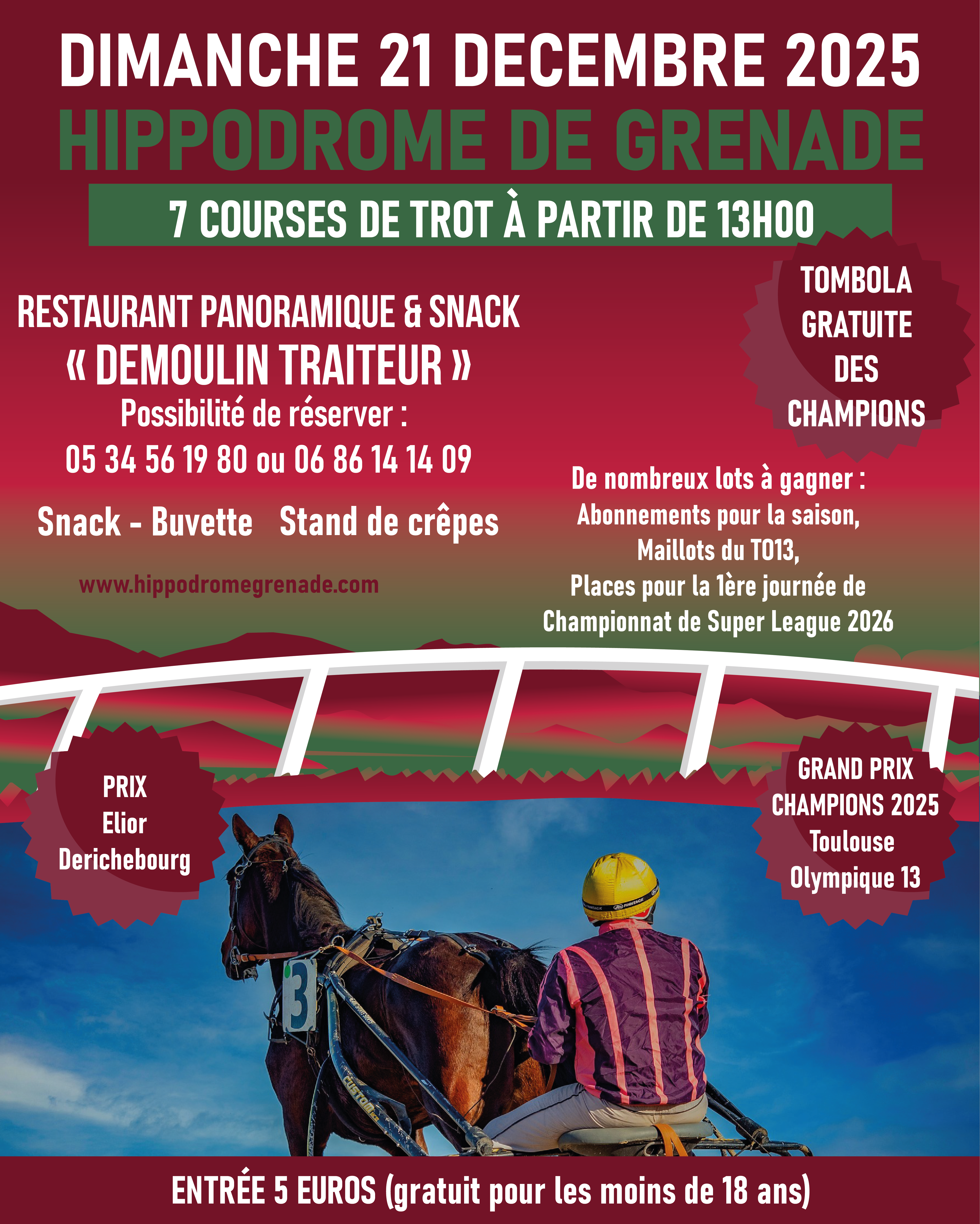 Pour cette ultime réunion du meeting et de l’année, le programme prévoit huit courses au trot de bon niveau. Temps fort de la journée, le Grand Prix d’Hiver, rebaptisé Grand Prix Champions 2025 Toulouse Olympique XIII, promet un spectacle de choix.